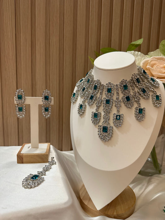 Tirana Necklace Set - Silver/Green
